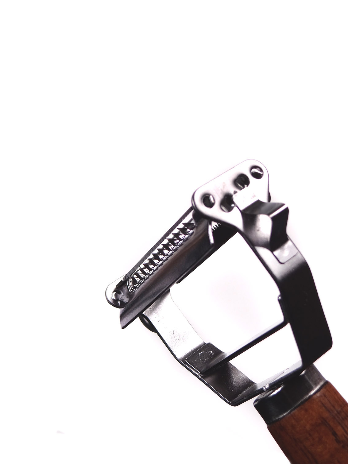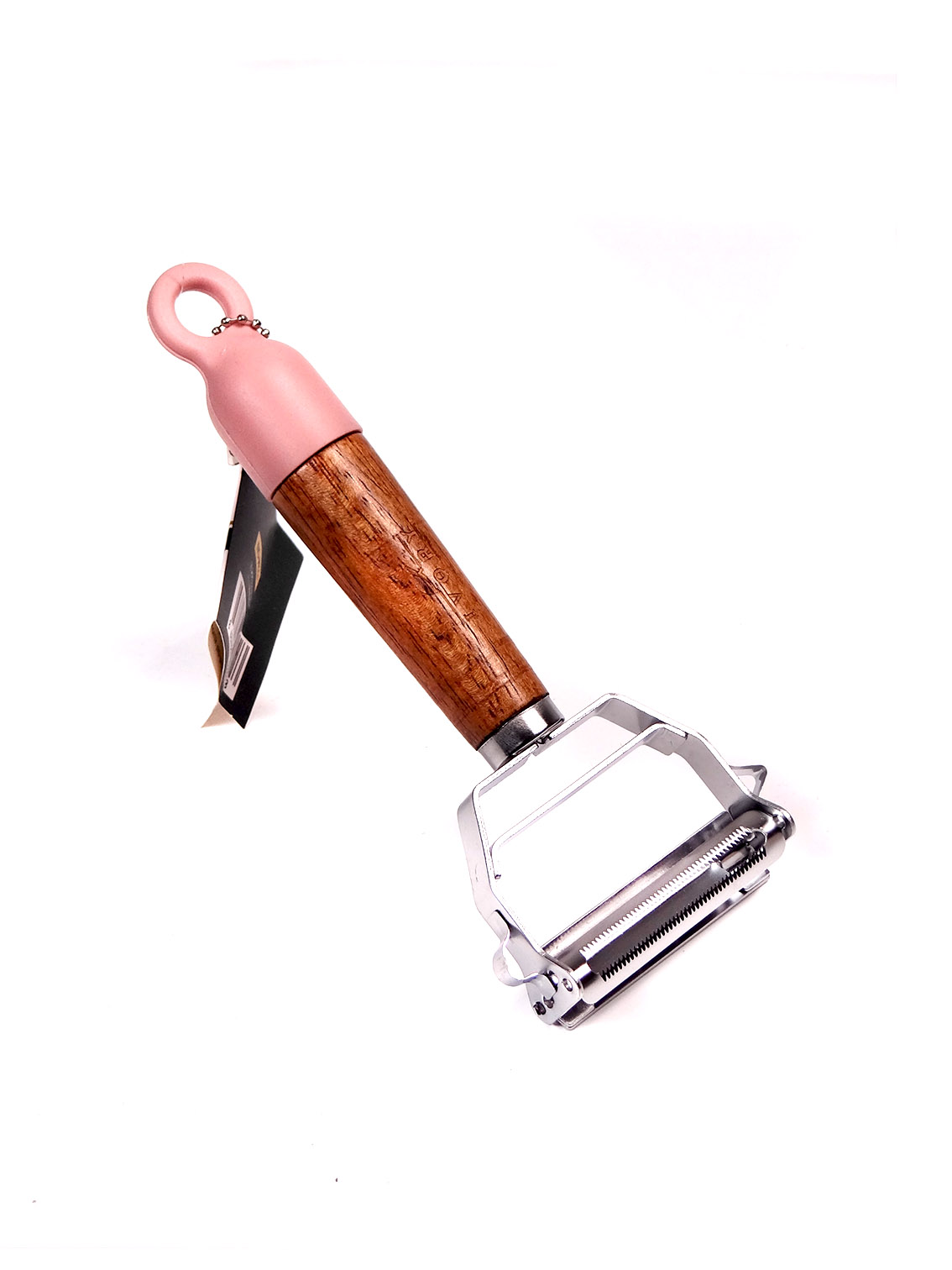 محصولی بسیار عالی با تیغه استیل ضد زنگ که یک سمت سری ان تیغه مخصوص پوست کندن و یک سمت سری هم تیغه های تیز برای رشته کردن خیار و هویج و کدو و...