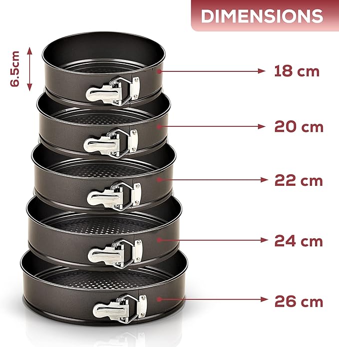 قالب کمربندی تفلون ، سایز های 18/20/22/24/26 سانتی متر با روکش تفلون باعث جدا شدن راحت کیک از قالب بدون بهم ریختن فرم ظاهری ان میشود . با باز کردن قسمت کمربندی قالب قالب به راحتی از کفه قالب جدا میشود که این کار باعث میشود کیک راحت تر و بدون آسیب جدا شود.
