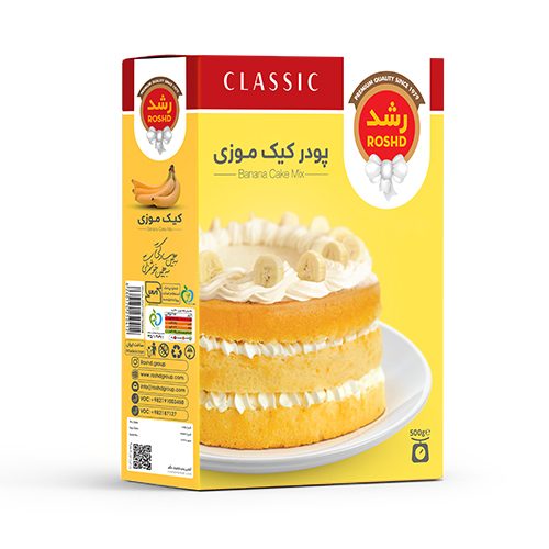 – پودر کیک موزی رشد را کم کم به مخلوط اضافه کنید و با دور کند همزن به مدت 1 تا 1.5 دقیقه مخلوط نمایید تا یکنواخت شود.