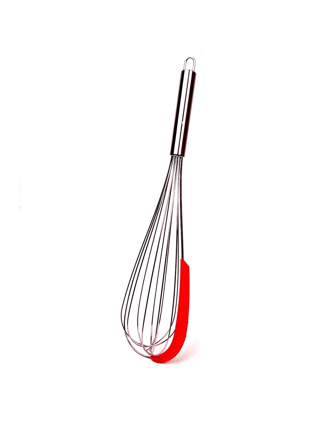 دسته آن به راحتی در دست قرار می گیرد و هم زدن با آن بسیار راحت و روان است. برای کوبیدن تخم مرغ، هم زدن مرنگ، سس و... عالی است. با قسمت سیلیکونی آن می توانید به راحتی مواد را جمع کنید.